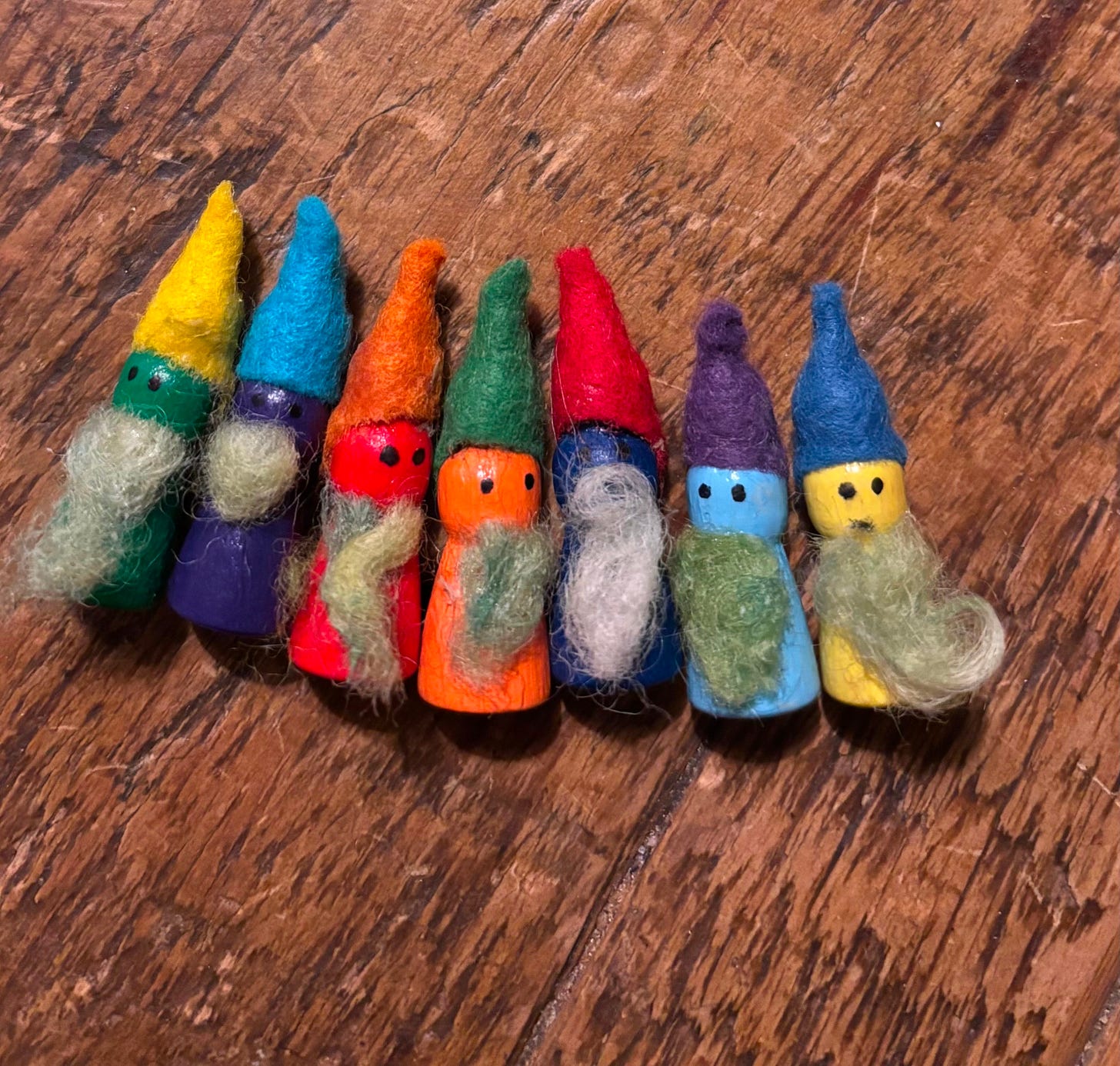 This is useful to know if you're excited to play this for the first time one night - you should unpack it during the daytime. Before playing, you have the opportunity to make. You transform the wooden dwarf playing pieces into dwarfish characters. There is felt supplied for their crafting of their hats. I also took up my additional whimsical requirement to include beards. Some felted wool from my stash added a beardiness any king from under the mountain would be proud of. I did have a few visions of them catching alight, so I tamed my initial extravagance of radically curly beards to this: